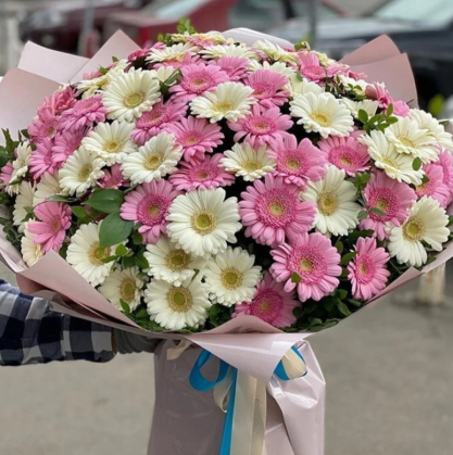 Букет из 101 белой и розовой герберой | Купить в Балашихе